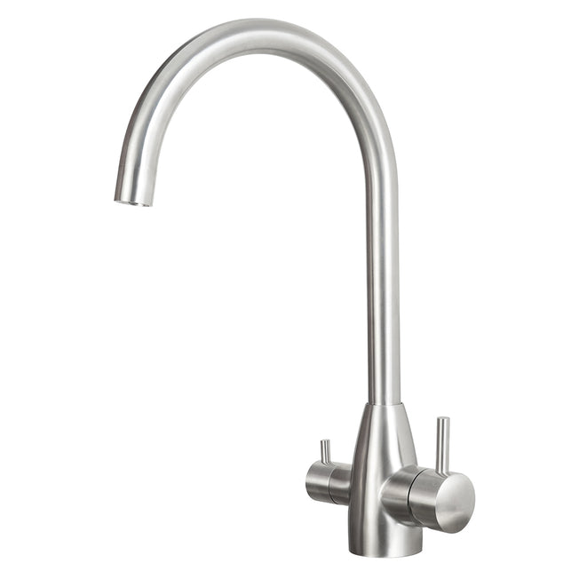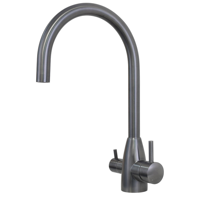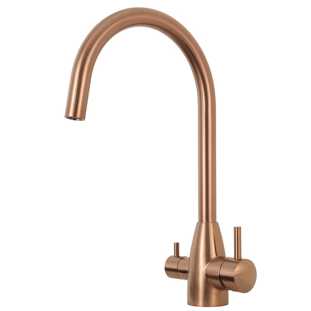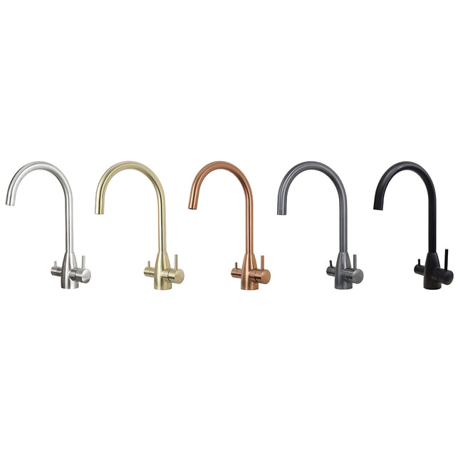 This premium dual-outlet flick mixer tap is available in a range of stunning colours, including Brushed Stainless, Rose Gold, Copper, Black, and Gun Metal 3 way mixer