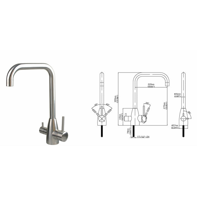 This 3 way flick mixer replaces your own flick mixer so you don't need an extra tap (faucet) on the sink for the output of the filtered water. The tap can be installed in any direction so you can have the main control on the left, right, front or at the back as the spout turns.