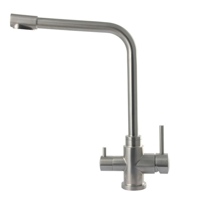 This 3 way flick mixer replaces your own flick mixer so you don't need an extra tap (faucet) on the sink for the output of the filtered water. The tap can be installed in any direction so you can have the main control on the left, right, front or at the back as the spout turns. Spout rotates 360deg.
