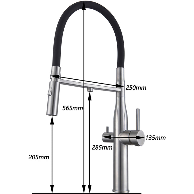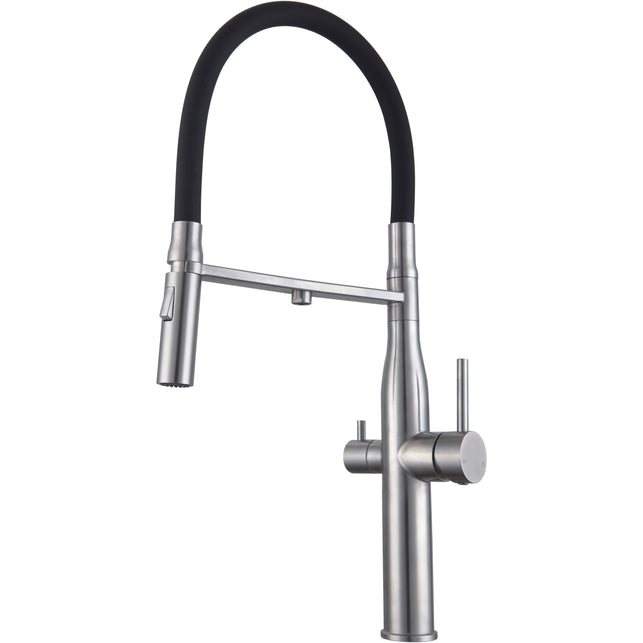 A Modern Stainless Steel 3 way mixer tap veggie spray.