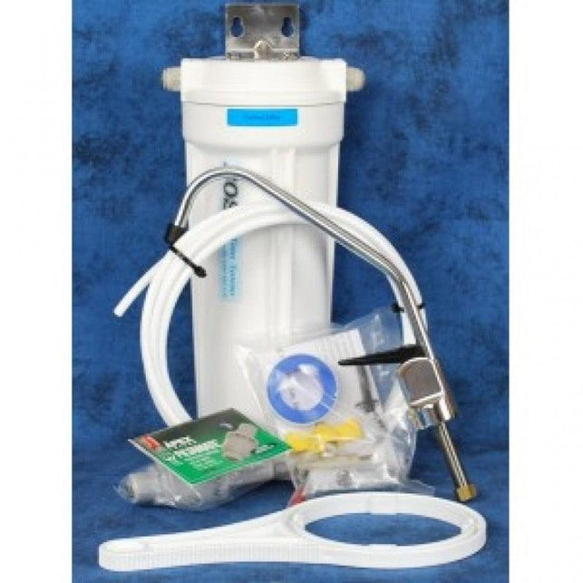 Supplied with QMP-300-HP U.S.A. made housing 10" Australian Standards AS3497 with 1/4" NPT threaded ports. This housing is tough with a burst strength of 575psi (4000kpa) and is tested to AS3497 which means it has been tested from 0 to 700kpa and back to 0 kpa 100,000 times without failure, cracking or distortion.