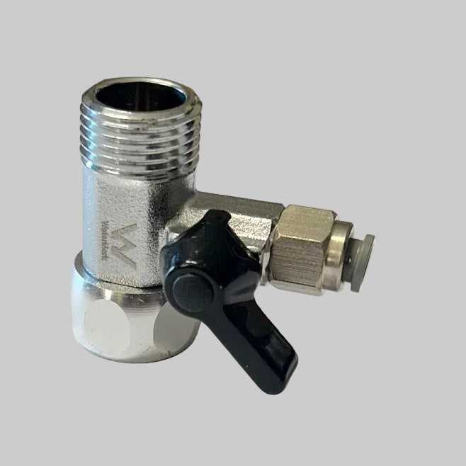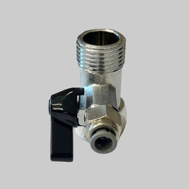 1/2" BSP male / female braided hose adapter to 1/4" tube quick connect with ball valve.