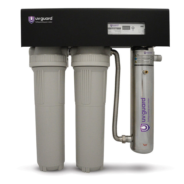 The UV Guard CWP Series is a compact, all-in-one water purification system ideal for outdoor installations. Designed for use with rainwater, bore water, or town supply, it combines sediment filtration, carbon adsorption, and UV disinfection in a single weather-resistant unit.